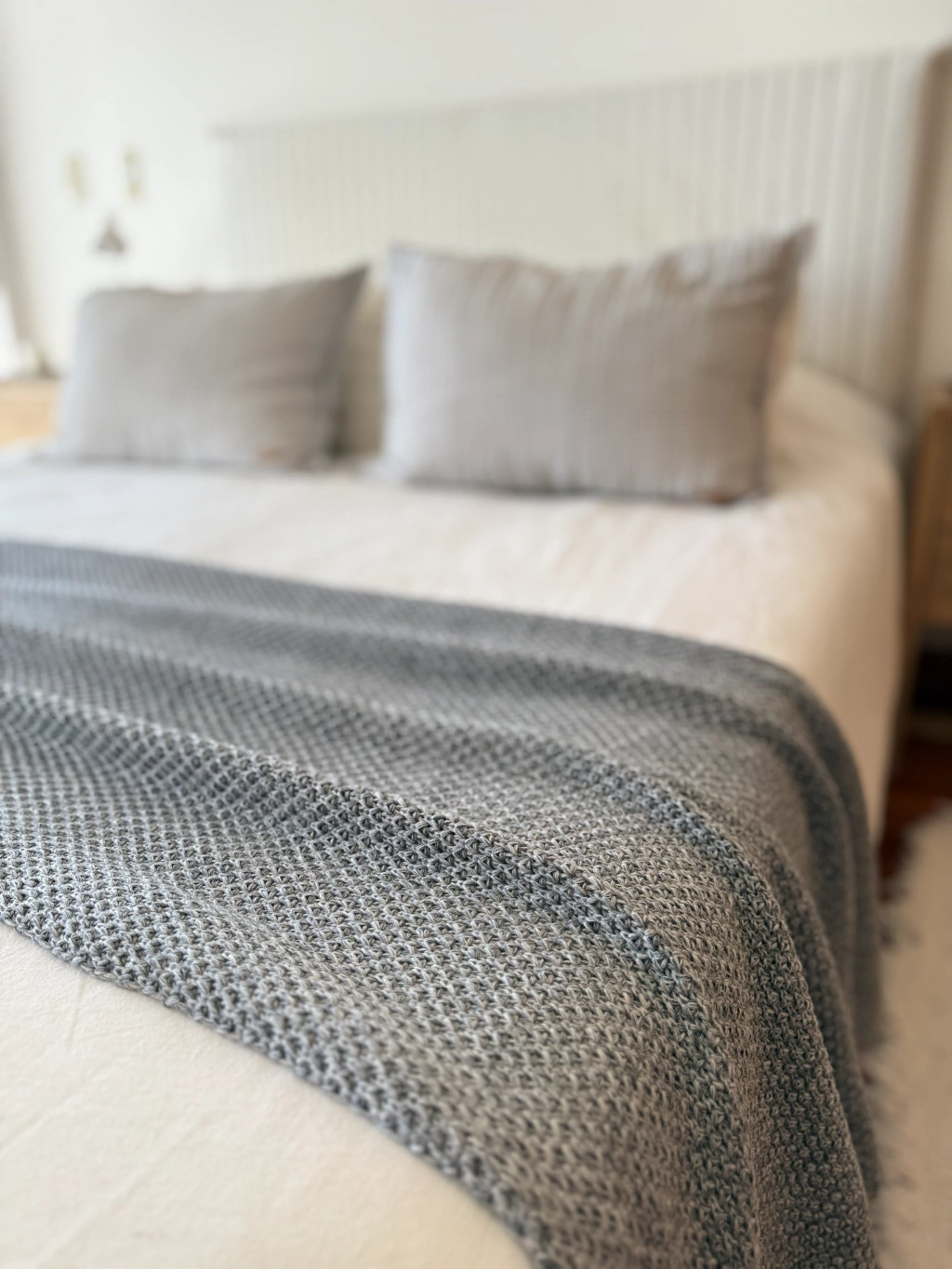 Tejida en un punto de estilo artesanal, y como todas las mantas de nuestra colección, fue pensada tanto para completar un look, como para vestir un rincón de tu casa. Ninguna de nuestras mantas genera desperdicio en su proceso de producción. Pero esta puntualmente se hace con los remanentes de hilado (los hilados de los que queda muy poca cantidad), para lograr aprovechar toda la materia prima. Se hace una selección de hilados, se separan los colores similares, y se buscan efectos de estética artesanal, sin perder la textura suave y amigable que nos gusta de nuestras mantas