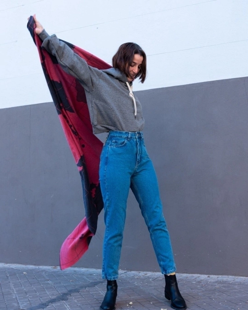 Tejida en forma tubular, que permite ver el dibujo del derecho y del revés. Teniendo más fuerza el color oscuro en una cara, y el claro en la otra.