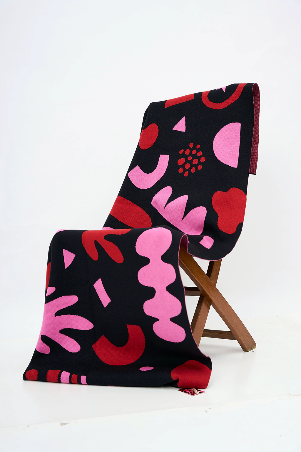 Tejida en jaquard picado, esta manta tiene una estética y textura distinta a las que habitualmente hacemos. Está inspirada en la técnica usada por el artista plástico Matisse, al final de su carrera. La manta está tejida en hilo de alogdón 100% de origen nacional, y no se produjeron desperdicios de materia prima en su proceso de producción. Tiene una textura más compacta que las mantas reversibles, lo que la hace apta para usar como accesorio (oversized) o como tapiz y vestir una pared, o un espacio de la casa. Por sus dimensiones, también puede quedar hermosa como pie de cama.