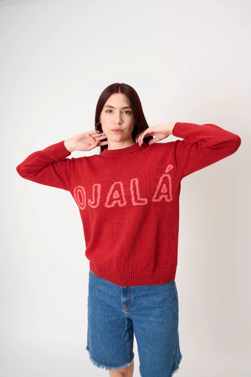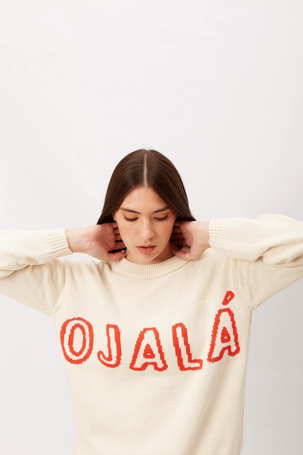 El SWEATER NAHYA (OJALÁ) es una prenda que encarna la belleza de lo simple con un toque de deseo y magia. Su estructura clásica y hombros caídos ofrecen una caída natural y elegante, resaltada por una intarsia en el pecho con la palabra Ojalá, símbolo de esperanza y aspiración.. La prenda tiene la estética de un buzo pero mucho más hermosa porque tiene la magia del tejido. Con su caída, su textura... Tejida en hijo de algodón 100% nacional. Es un must para quienes buscan estilo y significado en su vestuario.