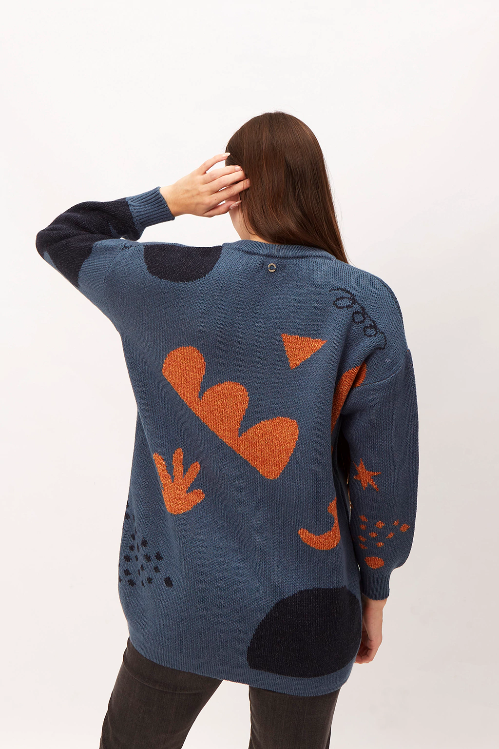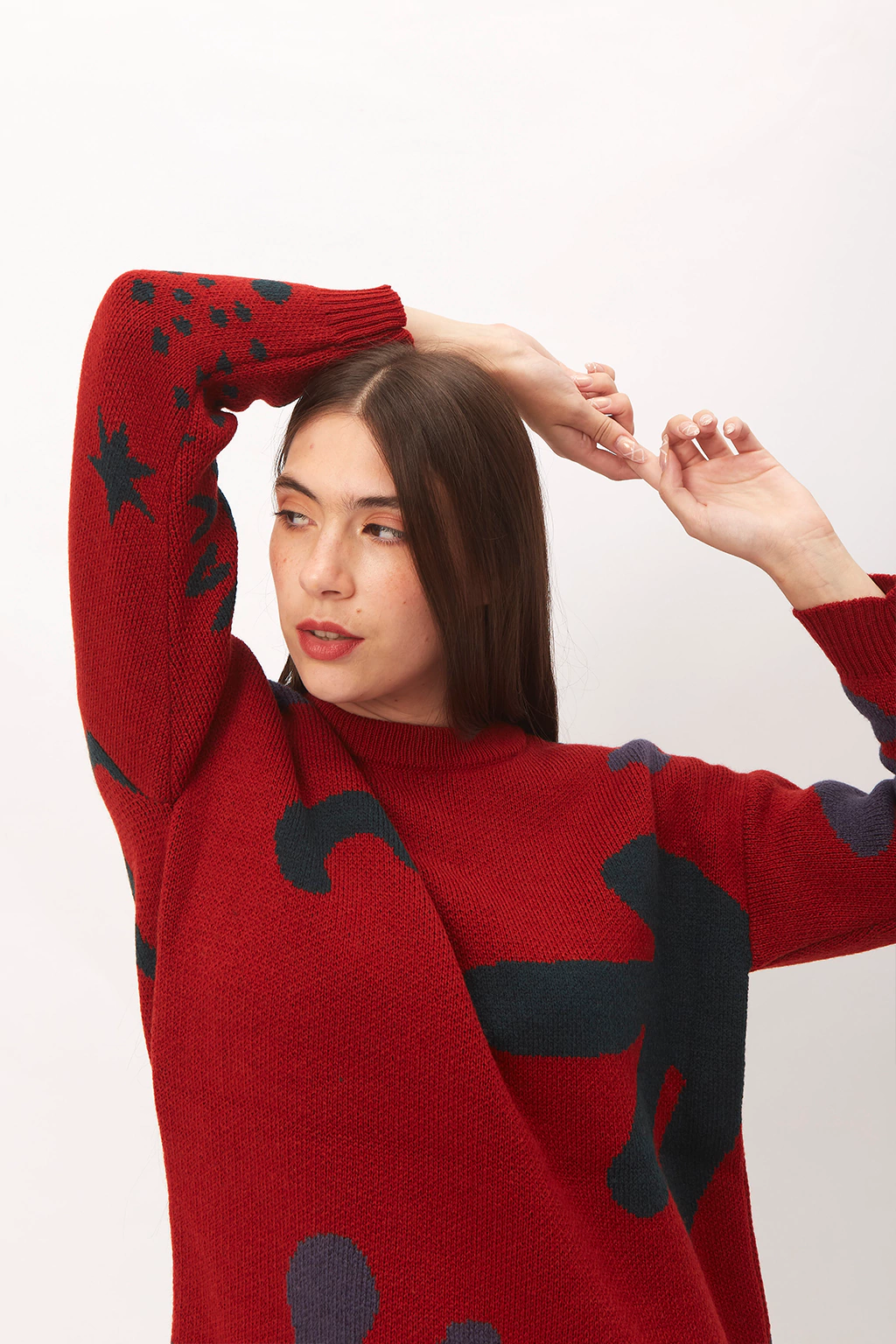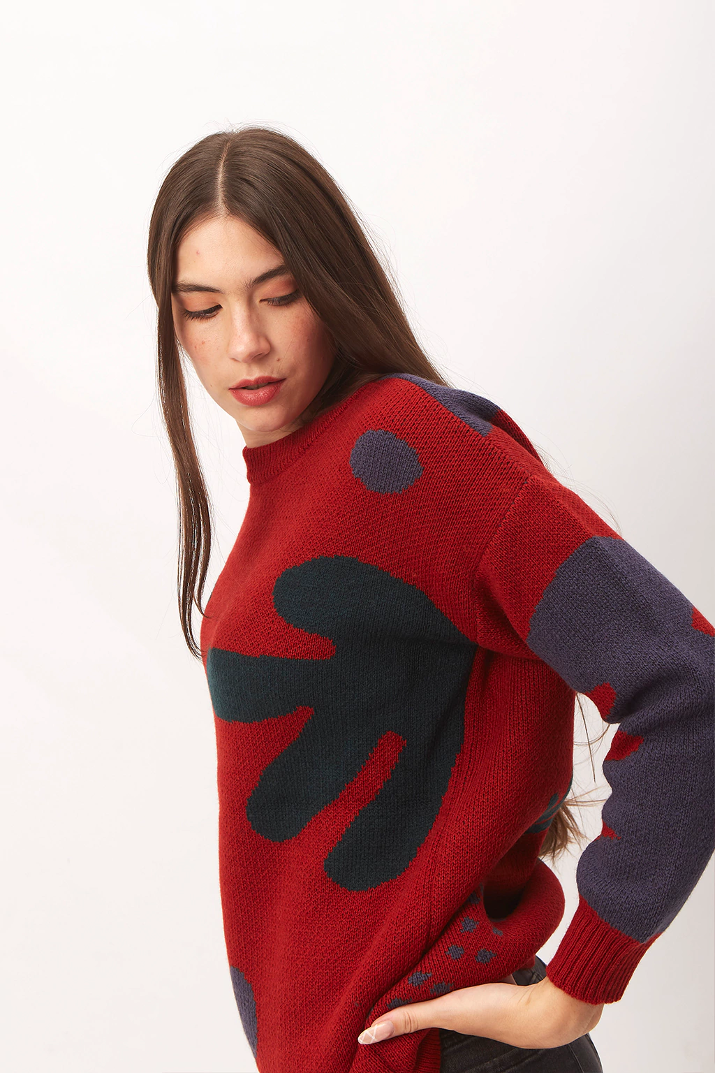 El SWEATER NAOMI es la prenda ideal para los días fríos. Con su estructura oversized, este sweater está tejido con la técnica de Jaquard picado, lo que le otorga un diseño único y acogedor. Inspirado en nuestra manta Manchas de Matisse, combina comodidad y estilo, permitiéndote lucir super canchera sin sacrificar el abrigo.